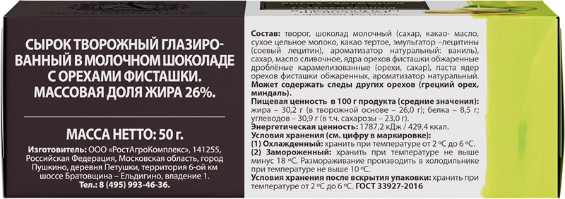 Сырок глазированный А.Ростагрокомплекс Фисташка 26%, 50г