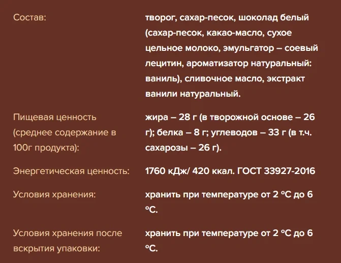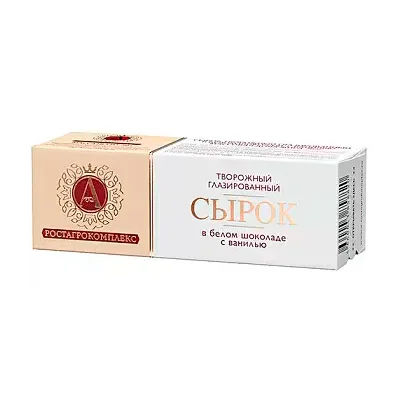 Сырок глазированный А.Ростагрокомплекс в белом шоколаде 26%, 50г БЗМЖ – питательное лакомство, которое быстро утоляет голод, придает сил и повышает работоспособность. Оно изготавливается из творога, дополненного натуральным белым шоколадом. В продукте нет ароматизаторов, красителей и ГМО. Он отлично сочетается с горячими напитками, в частности, с чаем и кофе, молоком. Благодаря высокой энергетической ценности он способствует быстрому восстановлению после интенсивных физических нагрузок.