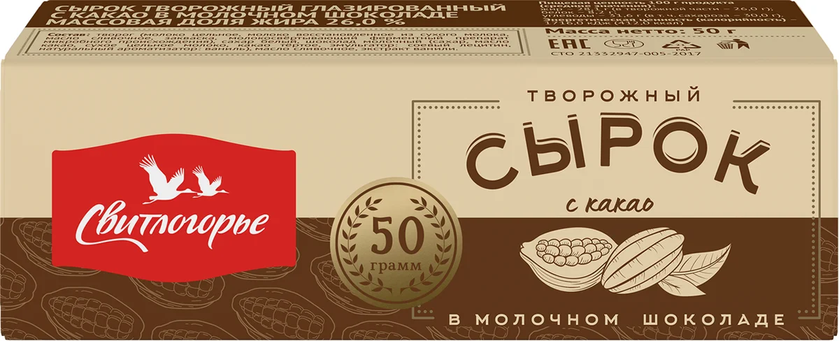 Сырок творожный Свитлогорье глазированный с какао 26%, 50г