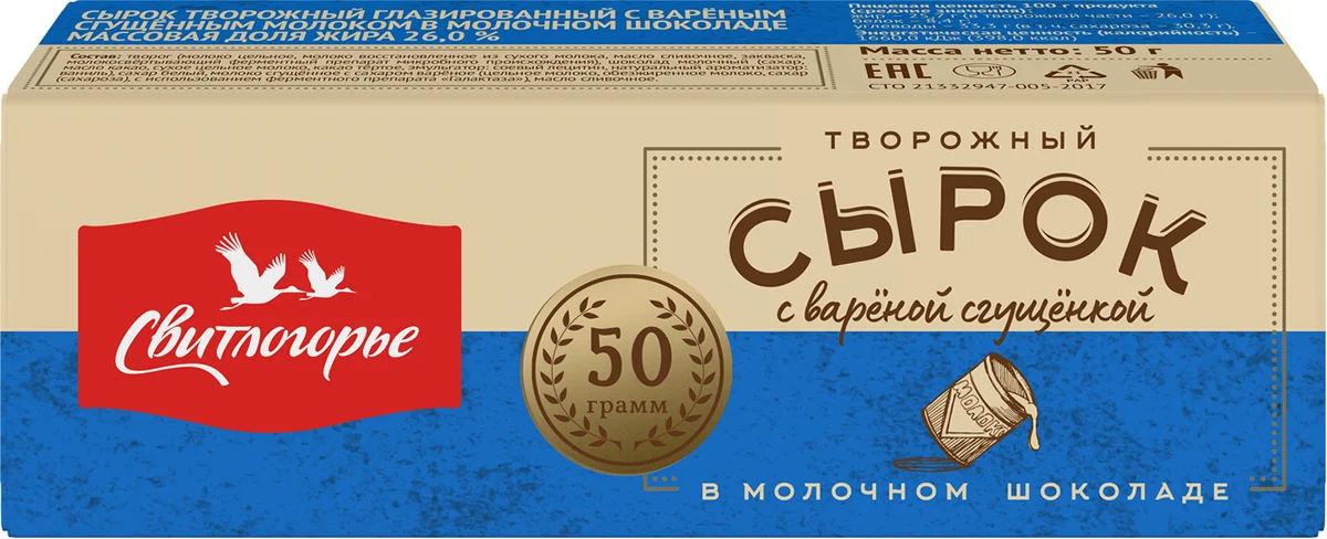 Сырок творожный Свитлогорье глазированный с вареной сгущенкой в молочном шоколаде, 50г