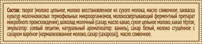 Творожный сырок в настоящем молочном шоколаде с натуральной вареной сгущенкой. Полезное и вкусное лакомство для детей. Продукт изготовлен из натурального творога с добавлением вареного сгущенного молока с заливкой молочным шоколадом. Это сладкий продукт для перекуса или на десерт. Вкус детства, который никогда не надоедает.