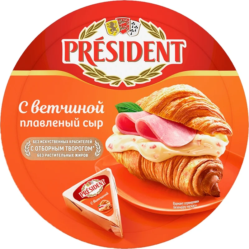 Сыр плавленый President с ветчиной 45%, 140г