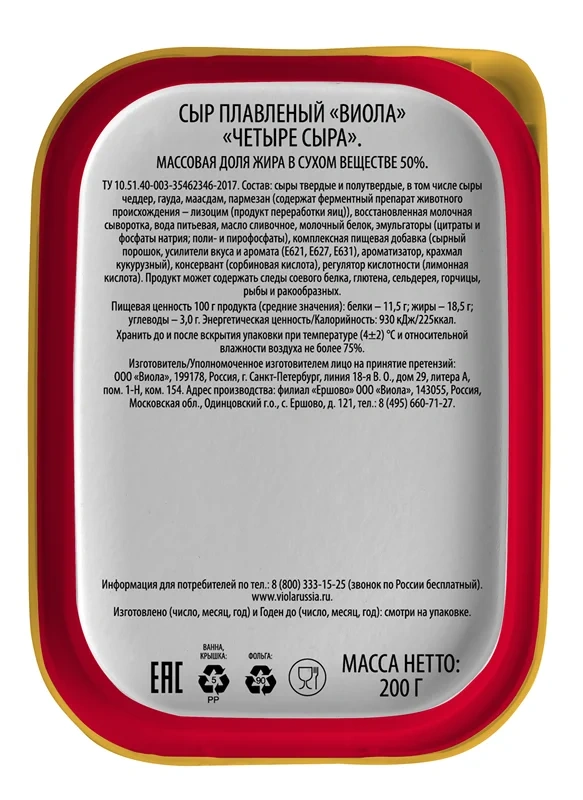 Сыр плавленый Viola 4 сыра 50%, 200г