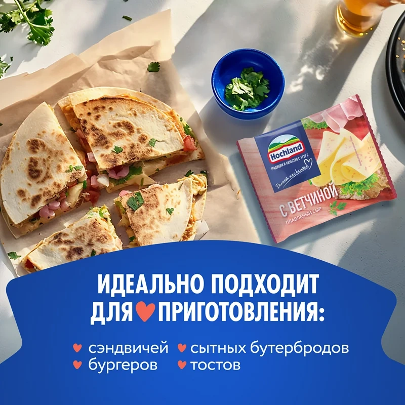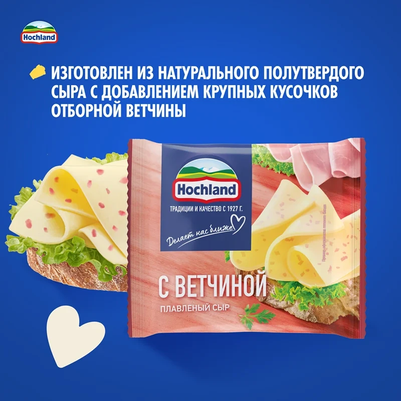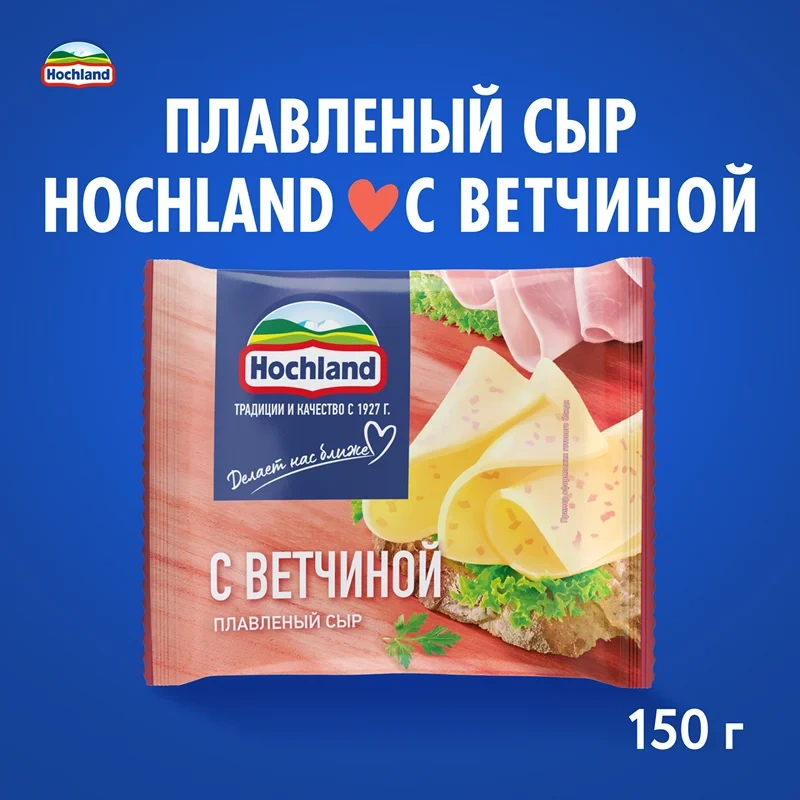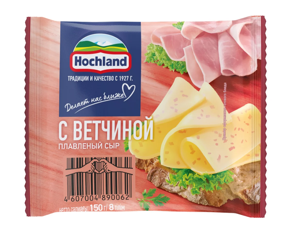 Сыр плавленый Hochland с ветчиной в ломтиках 45%, 150г