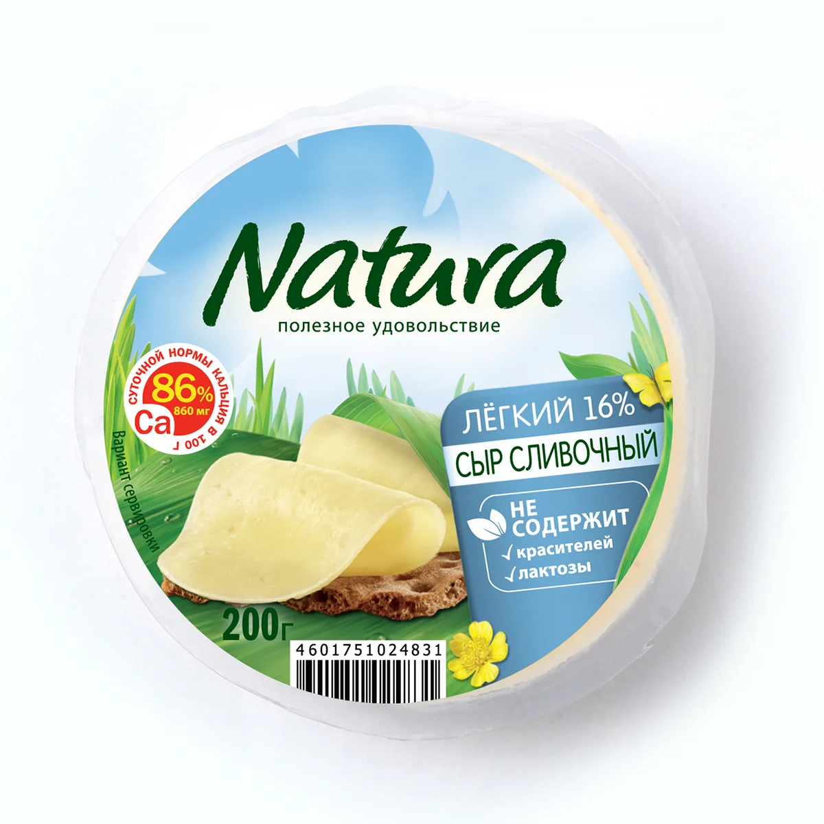 Сыр Natura сливочный легкий полутвердый 16%, 200г