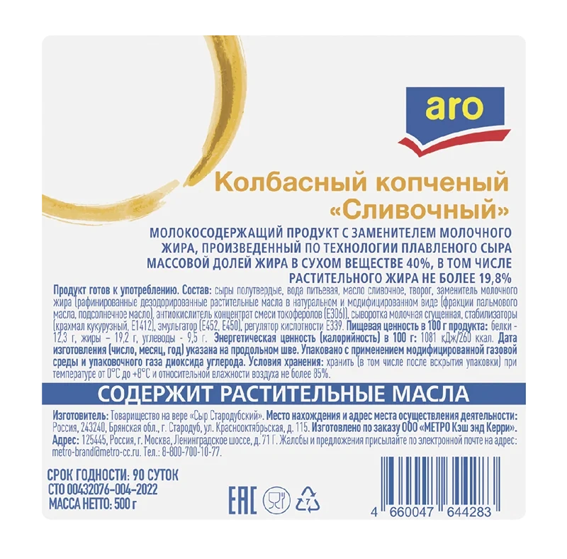 aro Продукт молокосодержащий сливочный 40%, 500г