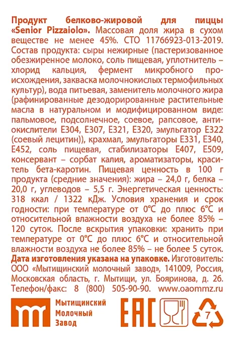 Сырный продукт Senior Pizzaiolo для пиццы 45%, ~2кг