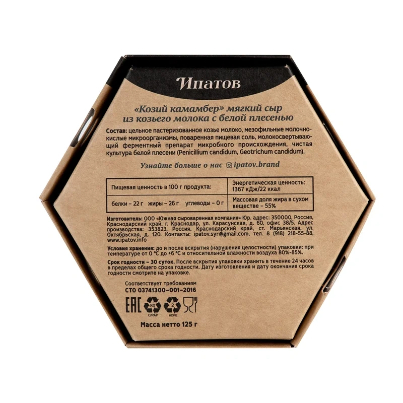 Сыр Ипатов Мастерская сыра Камамбер козий мягкий 50%, 125г