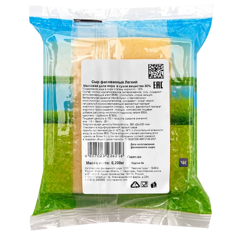 Сыр Тысяча озёр Легкий полутвердый 15%, 200г