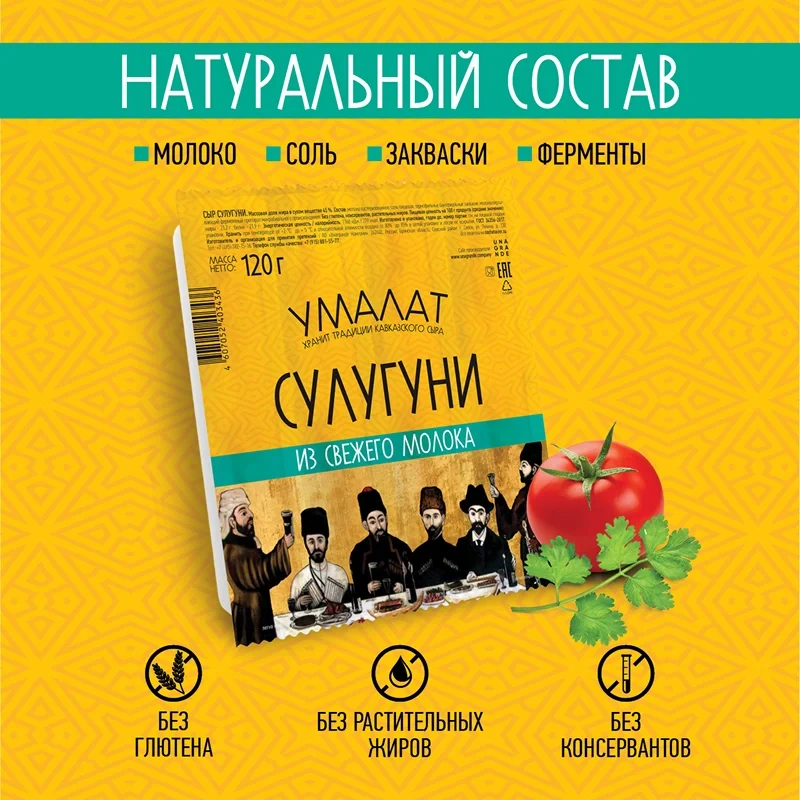 Сыр Умалат Сулугуни для хачапури кубики нарезка 45%, 120г