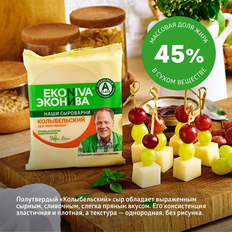 Сыр Эконива Колыбельский полутвердый 45%, 200г