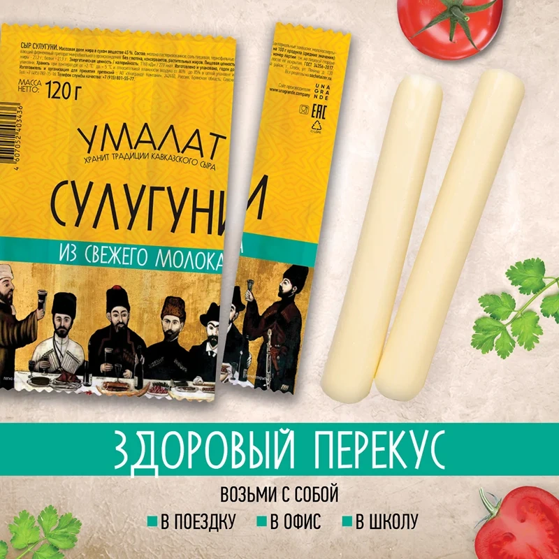 Сыр Умалат Сулугуни палочки 45%, 120г