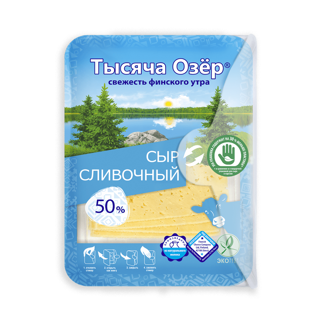 Сыр Тысяча озёр Сливочный полутвердый нарезка 50%, 125г