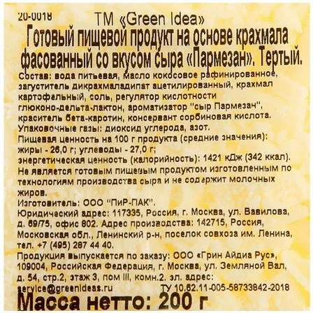 Сыр растительный Green Idea Пармезан тертый на основе крахмала 26%, 200г
