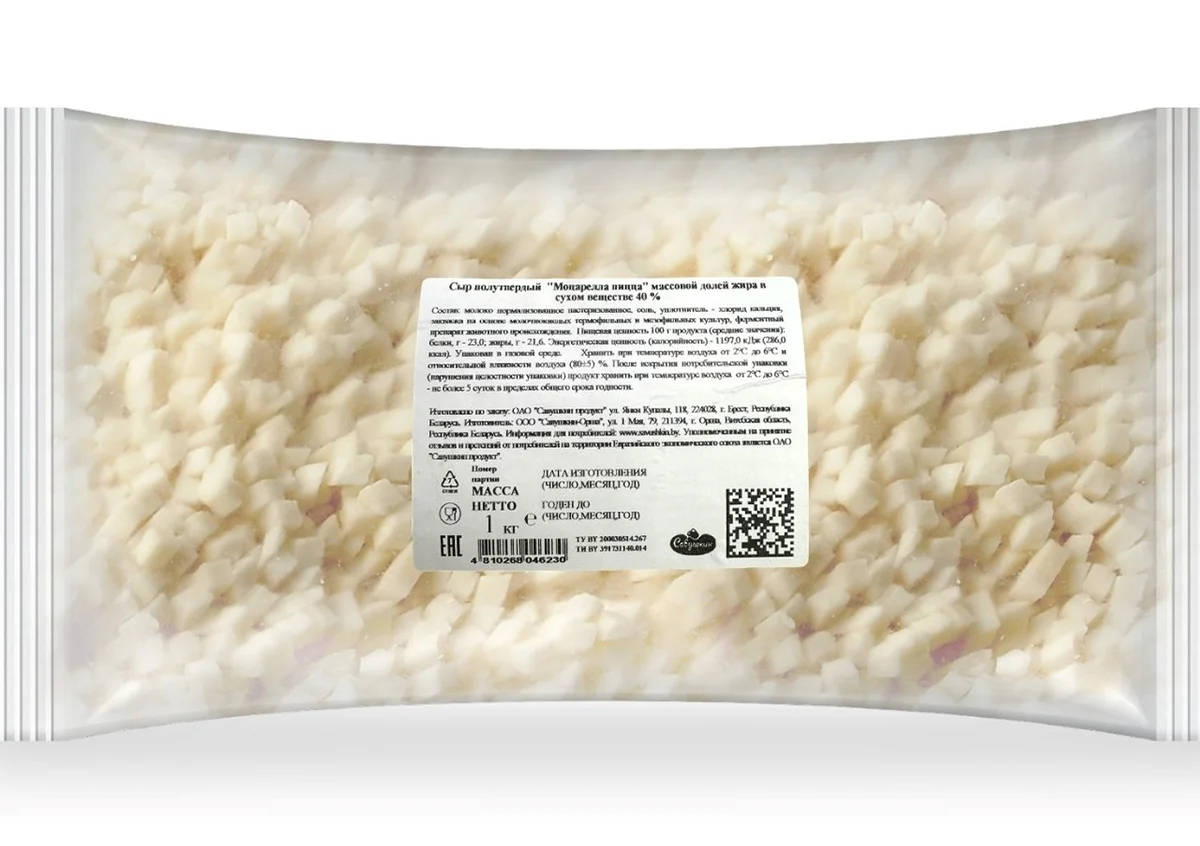 Сыр Савушкин продукт Моцарелла пицца полутвердый нарезка кубики 40%, 1кг