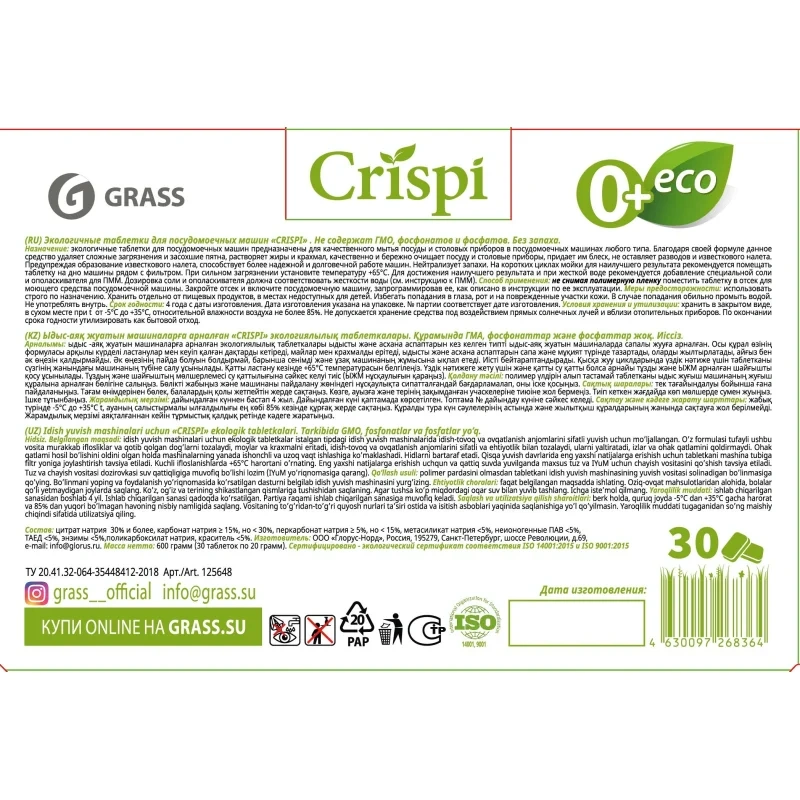 Таблетки для ПММ Grass Crispi 30шт