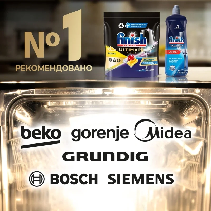 Таблетки для посудомоечных машин Finish Ultimate Лимон (44 штук в упаковке) Назначение: Finish Ultimate All in 1 обеспечивает превосходное очищение и безупречный блеск с первого раза. Технология Activelift эффективно справляется с засохшими загрязнениями даже спустя 24 часа без предварительного замачивания. Каждая капсула состоит из трех частей: порошок — удаляет сложные загрязнения, синий гель — нейтрализует жир, красный гель — придает ослепительный блеск. Более того, капсулы Finish Ultimate All in 1 защищают вашу стеклянную посуду и столовые приборы от помутнения, сохраняя их блеск после мытья. Способ применения: не трогайте капсулу мокрыми руками. Не разламывайте. Не снимайте оболочку с капсулы, она полностью растворяется в процессе мойки. Поместите 1 капсулу в сухой отсек на 1 цикл мойки. Не кладите капсулу в корзину для столовых приборов. Для наилучшего результата используйте режим «эко» или «авто». Меры предосторожности: содержит субтилизин. Может вызывать аллергические реакции. Может причинить вред при проглатывании. При попадании на кожу вызывает раздражение. При попадании в глаза вызывает выраженное раздражение. Вредно для водных организмов. Хранить в недоступном для детей месте. При попадании в глаза: осторожно промыть водой в течение нескольких минут. Снять контактные линзы, если Вы ими пользуетесь и если это легко сделать. Продолжить промывание глаз. Если раздражение глаз не проходит, обратиться к врачу, взяв с собой упаковку продукта или этикетку. Не глотать. При случайном проглатывании немедленно обратиться к врачу. При попадании на кожу: промыть большим количеством воды. Более полная информация по безопасному обращению химической продукции находится в паспорте безопасности. Состав: 15% или более, но менее 30%: неионогенные ПАВ; 5% или более, но менее 15%: отбеливающие вещества на основе кислорода, поликарбоксилаты, фосфонаты; энзимы, цеолиты, ароматизирующие добавки, в т.ч. лимонен. Условия хранения: не хранить с несовместимыми материалами, пищевыми продуктами и питьевой водой. Вскрывать непосредственно перед началом использования. Не хранить без оригинальной маркировки. Срок годности: 2 года.