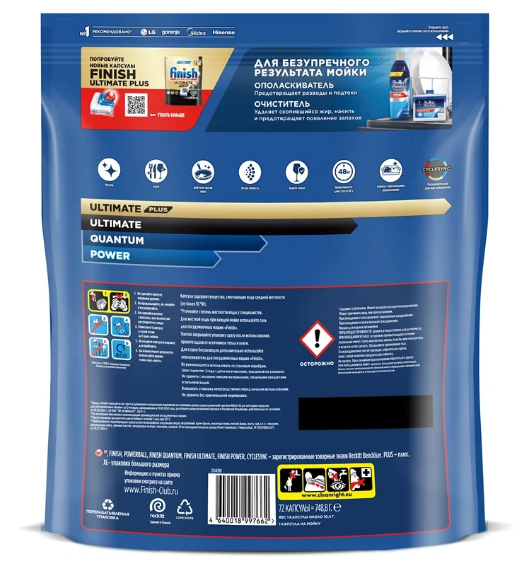 Капсулы для посудомоечной машины Finish Quantum, 72шт