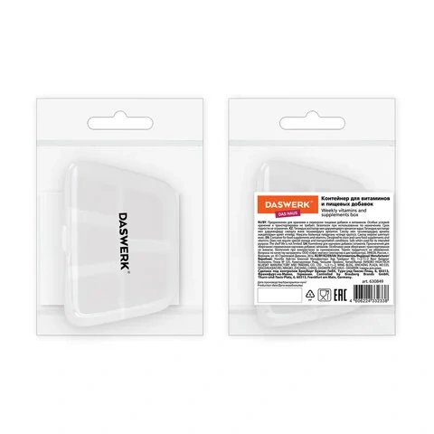 Благодаря своим компактным размерам, таблетница легко поместится в сумку, карман или даже кошелек. Удобное хранение и упорядоченный прием лекарств теперь доступен дома, на работе и в поездке.