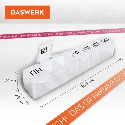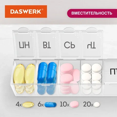 ТАБЛЕТНИЦА / Контейнер для лекарств и витаминов '7 дней/1 прием' КОМПАКТНЫЙ, DASWERK, 630843