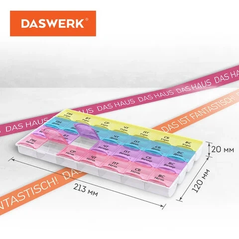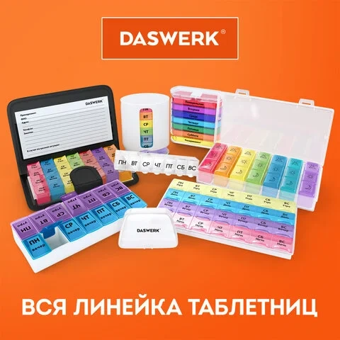 ТАБЛЕТНИЦА / Контейнер для лекарств и витаминов '7 дней/4 приема', ПРОЗРАЧНЫЙ, DASWERK, 630845