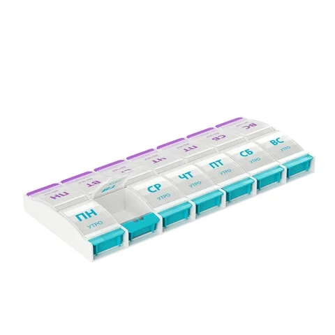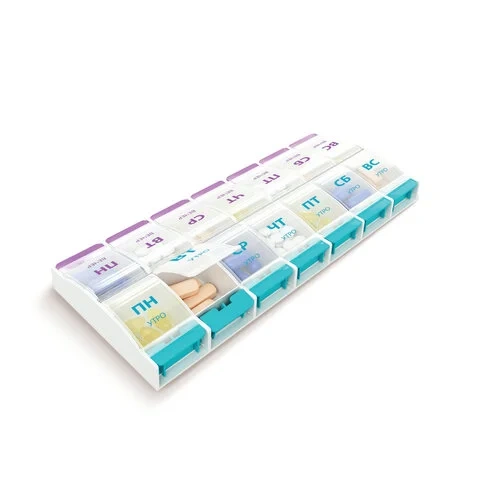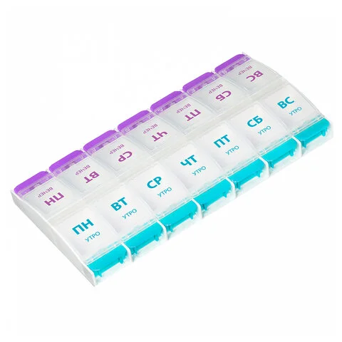 Для удобства крышки утренних и вечерних отсеков отличаются по цвету.