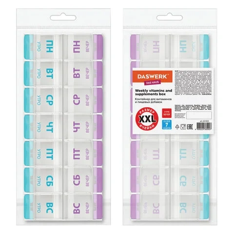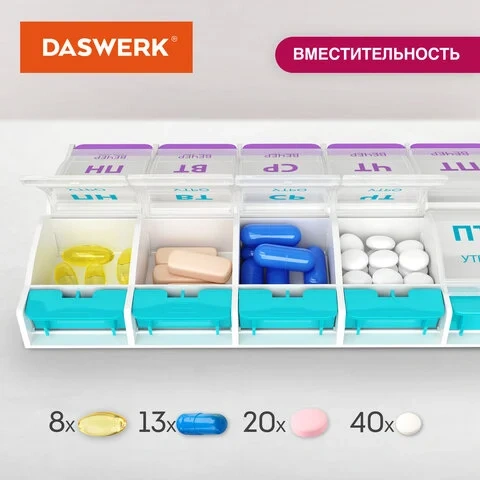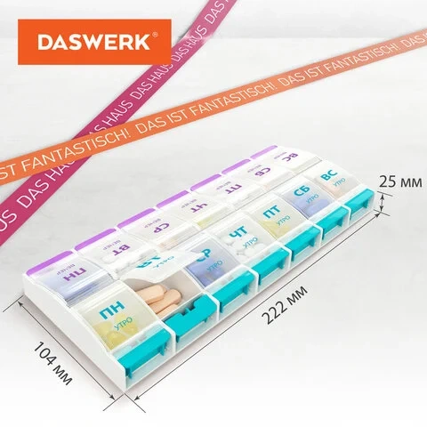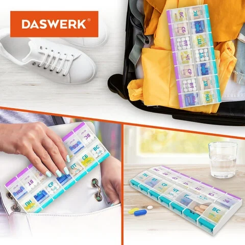 ТАБЛЕТНИЦА/Контейнер-органайзер для лекарств и витаминов '7 дней/2 приема MAXI', DASWERK, 631025