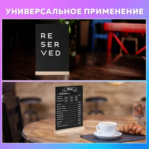 Табличка меловая настольная А4, вертикальная, на деревянной подставке, ПВХ, черная, BRAUBERG, 291298