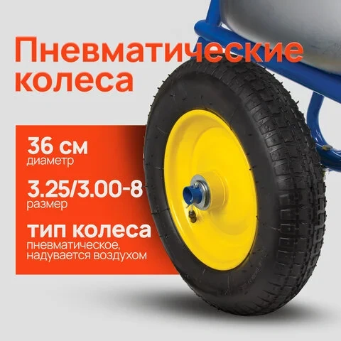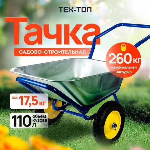 Тачка садово-строительная ТЕХ-ТОП, 110 л, максимальный вес 260 кг, цинковый кузов, пневмоколеса d=36
