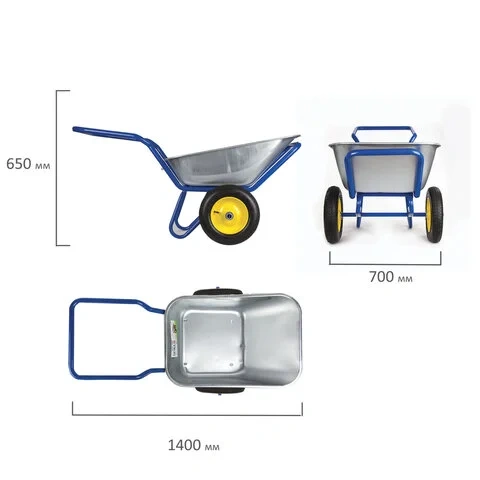 Благодаря усиленной раме тачка ТЕХ-ТОП обладает повышенной прочностью и увеличенной грузоподъемностью до 260 кг, а оцинкованный кузов гарантирует долговечность в работе. Пневматические колеса диаметром 36 см помогут преодолеть ухабистую поверхность на даче или в саду. Идеальна для транспортировки тяжелых предметов или вывоза/уборки строительного мусора.