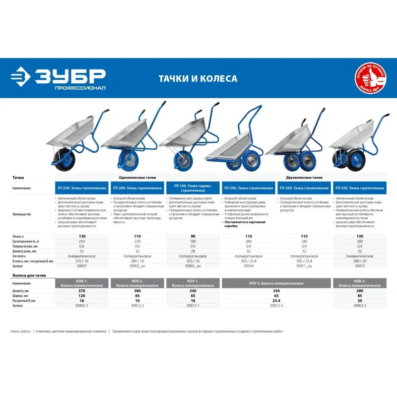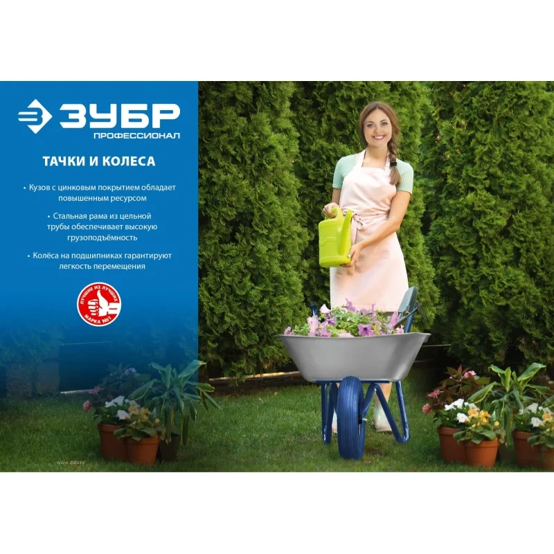 Тачка строительная Зубр ПТ-300 двухколесная грузоподъемность 240 кг (39911_z01)