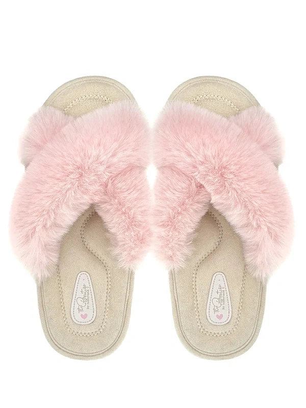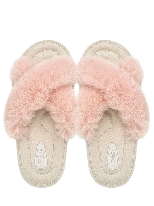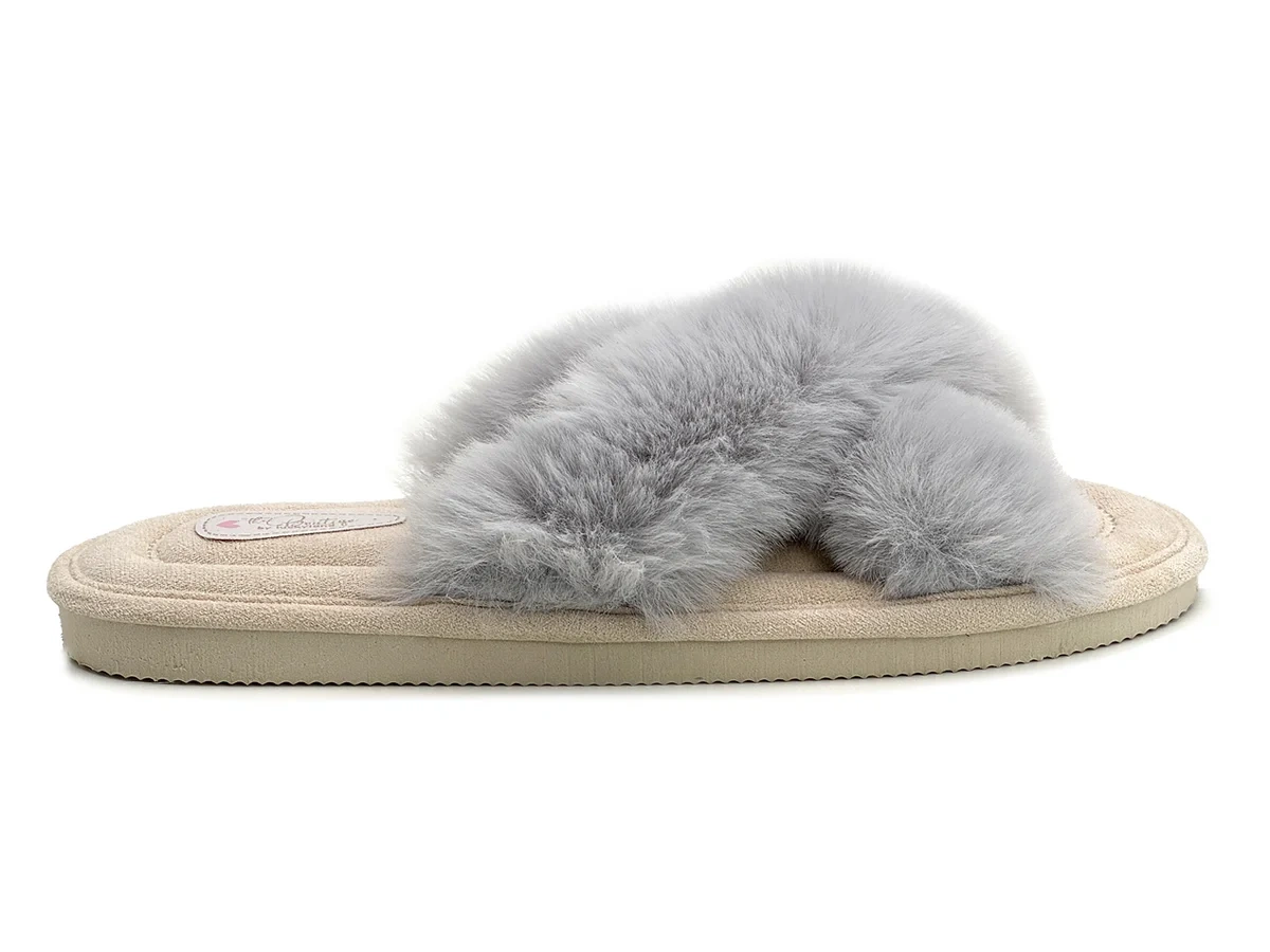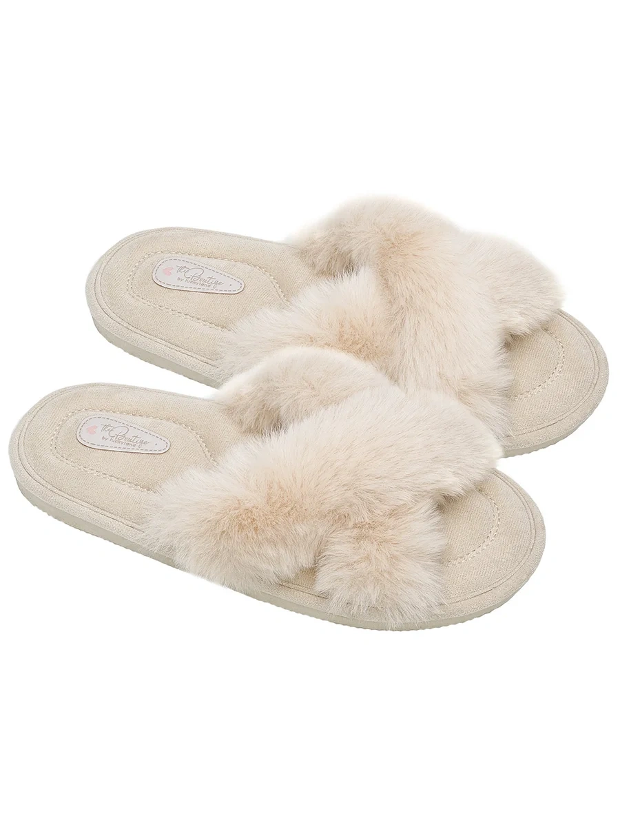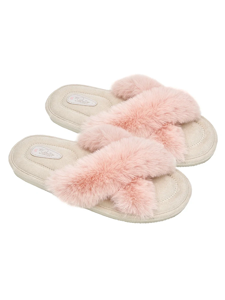 Тапочки женские Lucky Land перекрестное плетение с мехом