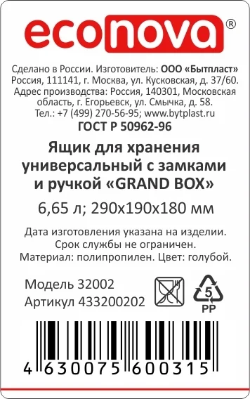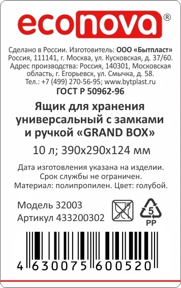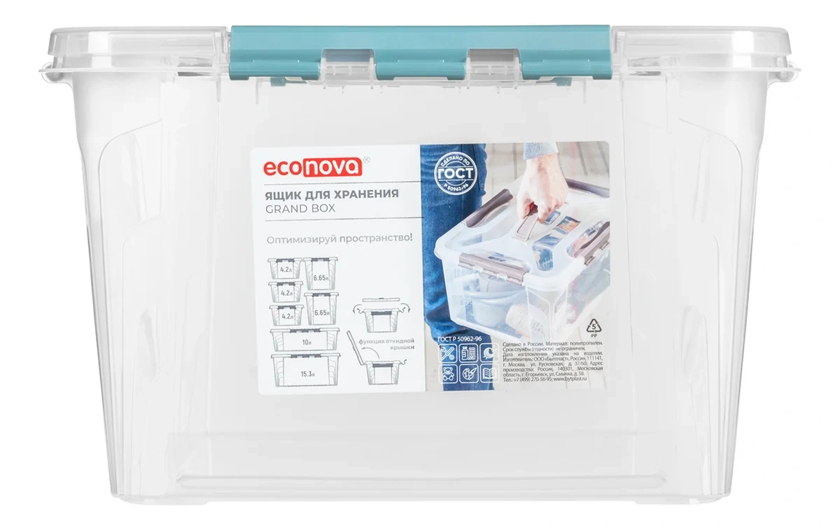 Контейнер для хранения Econova Grand Box голубой с крышкой 39 x 29 x 12.4л, 10л