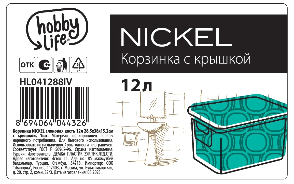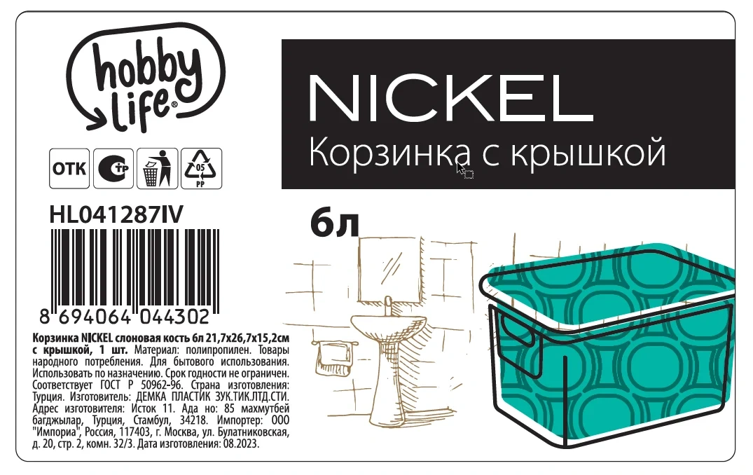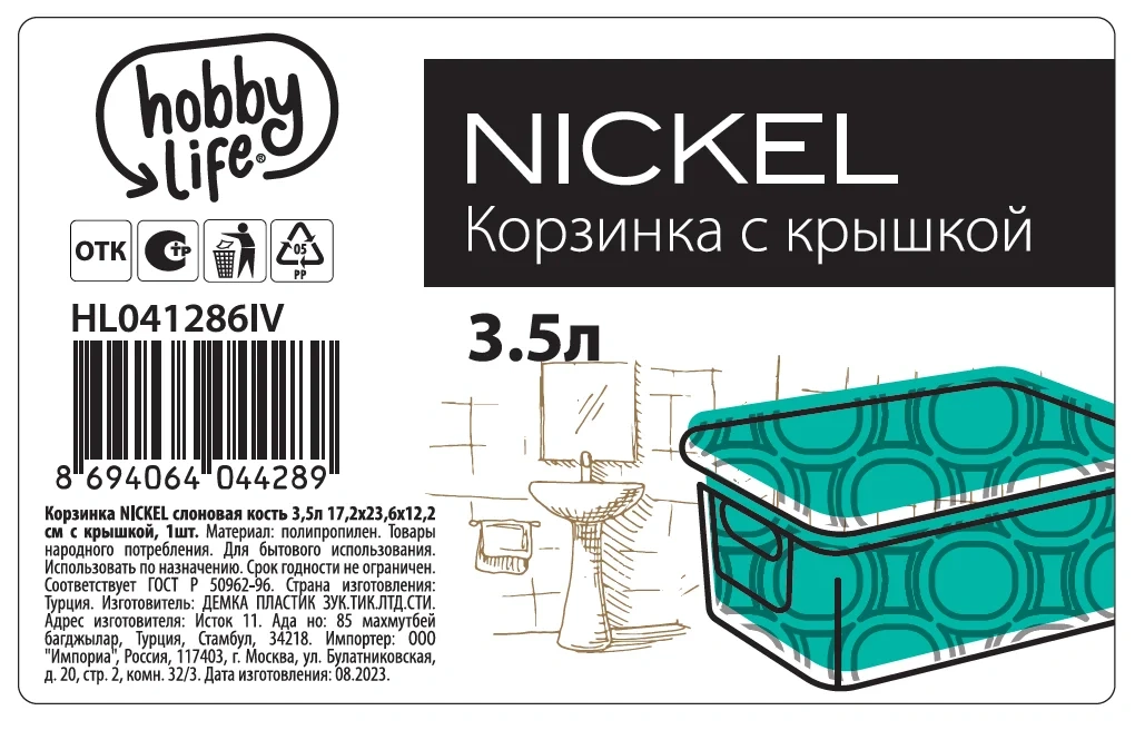 Корзина для хранения Hobby Life Nickel с крышкой белая 17.2 x 23.6 x 12.2см, 3.5л