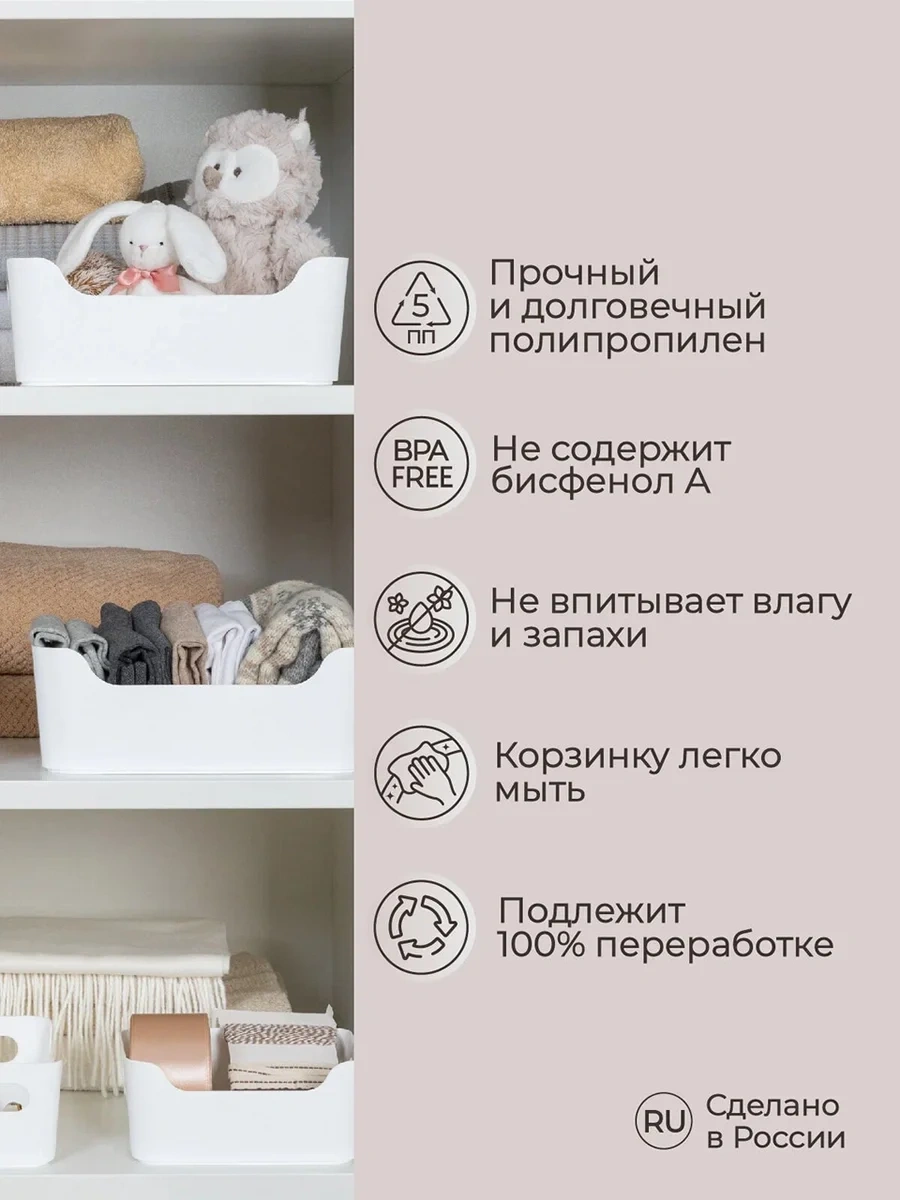 Корзина универсальная Эконова Scandi белая 3.1л, 24 х 17 х 9см
