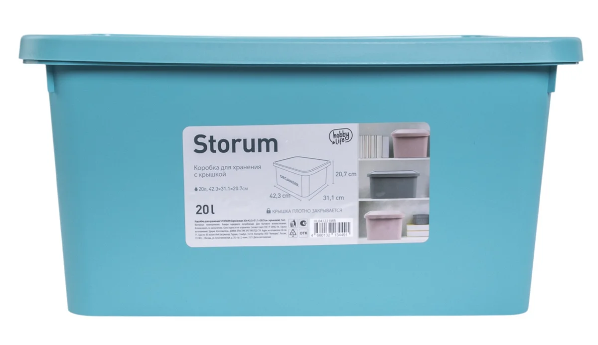Бокс для хранения Hobby Life Storum бирюзовый с крышкой 42.3 х 31.3 х 20.7см, 20л