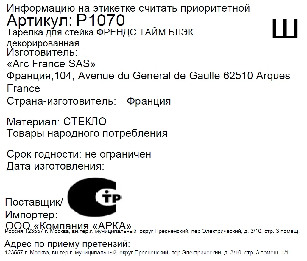 Тарелка для стейка Фрэндс Тайм Блэк декорированная - это стильное и практичное решение для сервировки обеденного стола. Изготовленная из прочного стекла, она обладает высокой устойчивостью к механическим повреждениям и температурным перепадам, что позволяет использовать ее в микроволновой печи. Диаметр тарелки составляет 300мм, что делает ее идеальной для подачи стейков и других мясных блюд. Черный цвет с декорированным рисунком придаёт изделию элегантный и современный вид, который украсит любую сервировку. Тарелка легко моется в посудомоечной машине, что обеспечивает удобство в уходе. Отсутствие бортиков позволяет удобно нарезать и сервировать блюда, а вес в 0,903кг делает её устойчивой на столе.