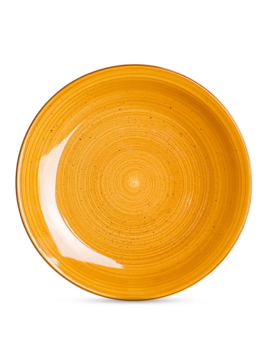 Она окрашена в медовый цвет и отлично подойдет для подачи первых блюд. Благодаря лаконичному дизайну тарелка гармонично впишется в любой интерьер. Подходит для подачи блюд: закусок, нарезок или салатов на общий стол.