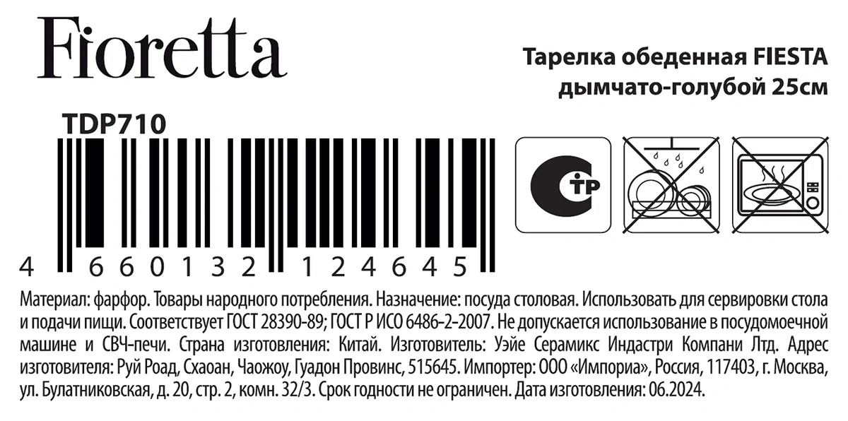 | Тип | тарелка обеденная |