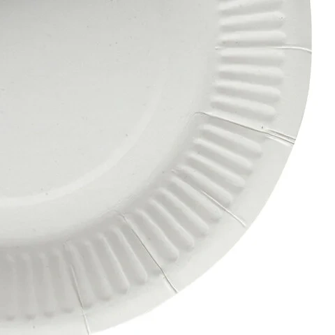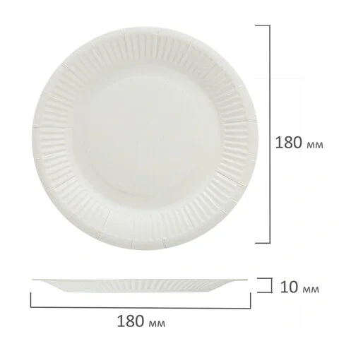 Подходят как для холодных, так и для горячих блюд (до+70 °С). Предназначены для корпоративных мероприятий любого формата, выездов на природу, пикников. Можно использовать для разогрева еды в микроволновой печи. Изготовлены из ламинированной бумаги белого цвета. Диаметр тарелок 180 мм, поставляются в комплекте 100 штук.