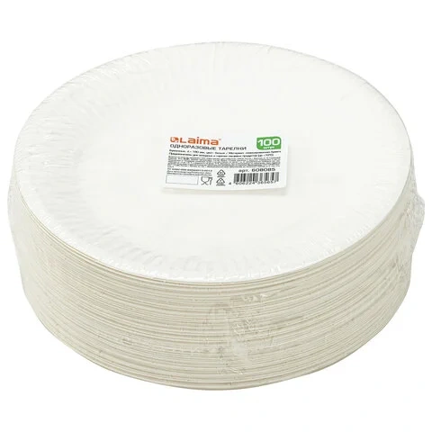 Тарелка одноразовая бумажная 180 мм, 100 штук, СТАНДАРТ, жиростойкая ламинированная, LAIMA, 608085