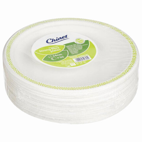 Тарелка одноразовая Chinet Duet белая, бумажная, d=24см, 50шт/уп