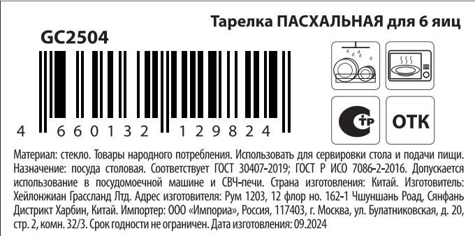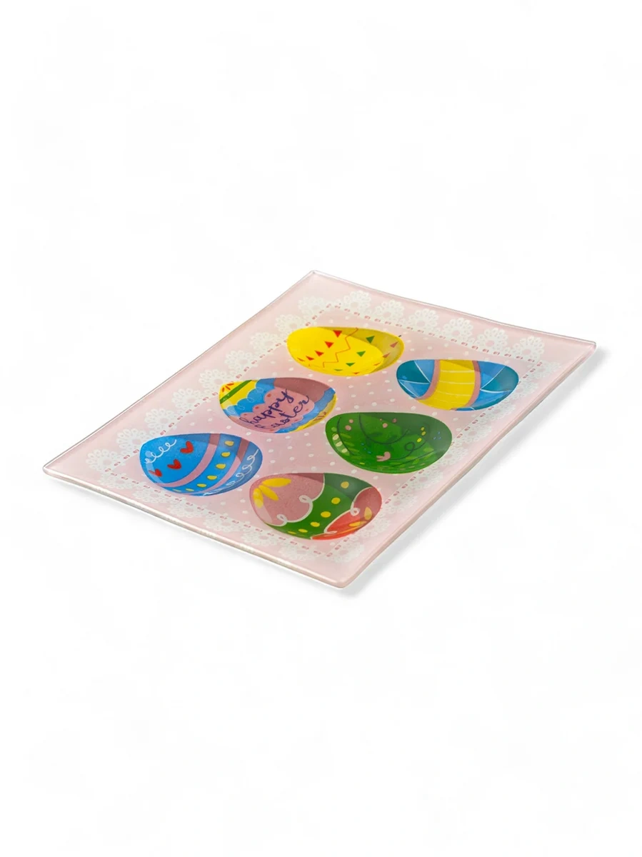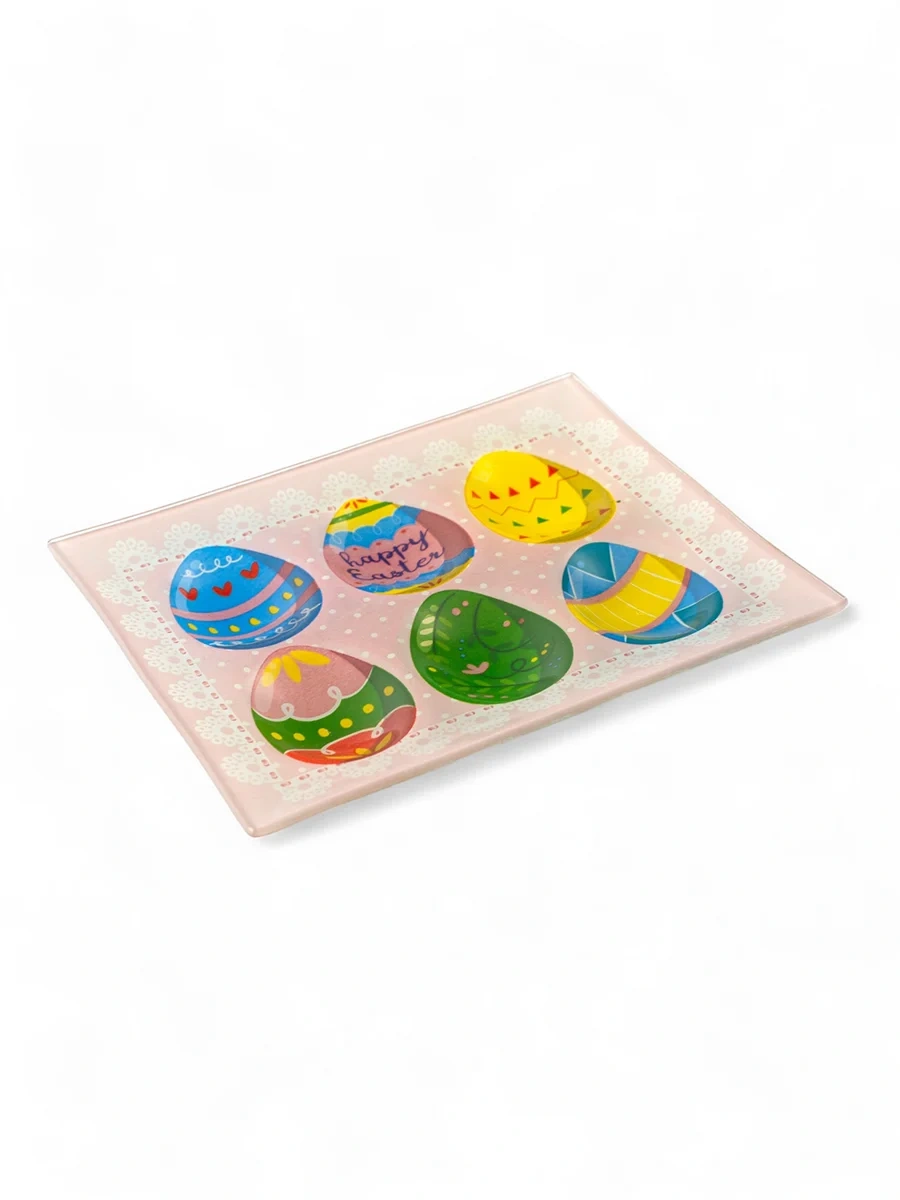 Тарелка пасхальная для 6 яиц. Очаровательная пасхальная тарелка с выемками для 6-ти яиц. В центре - место для установки кулича или творожной пасхи. Изготовлена из стекла и украшена великолепным декором. Такая посуда, несомненно, украсит праздничный Пасхальный стол.