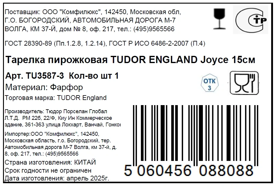 | Комплектация | тарелка пирожковая - 1 шт. |