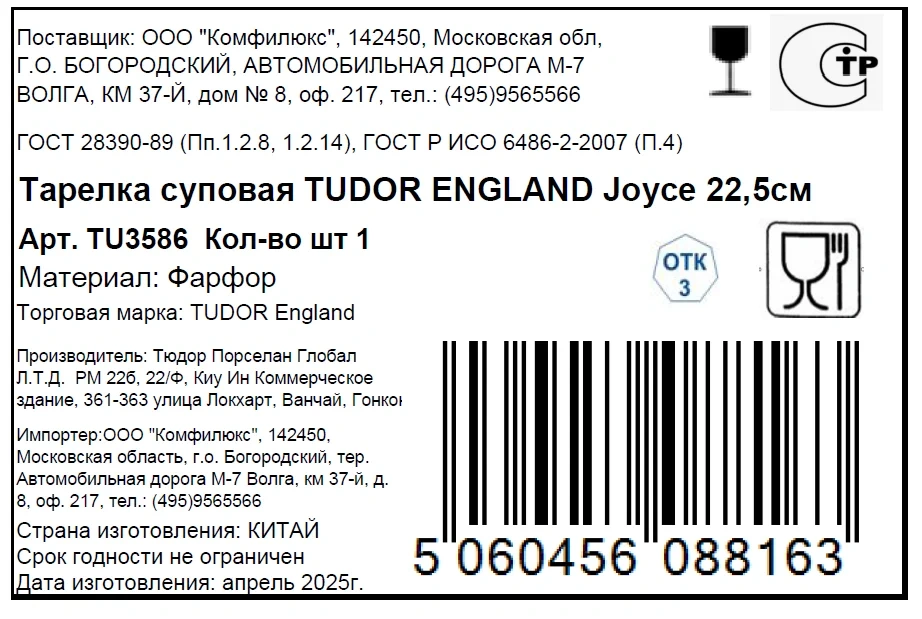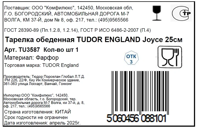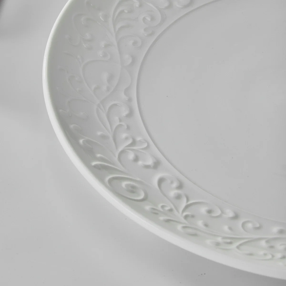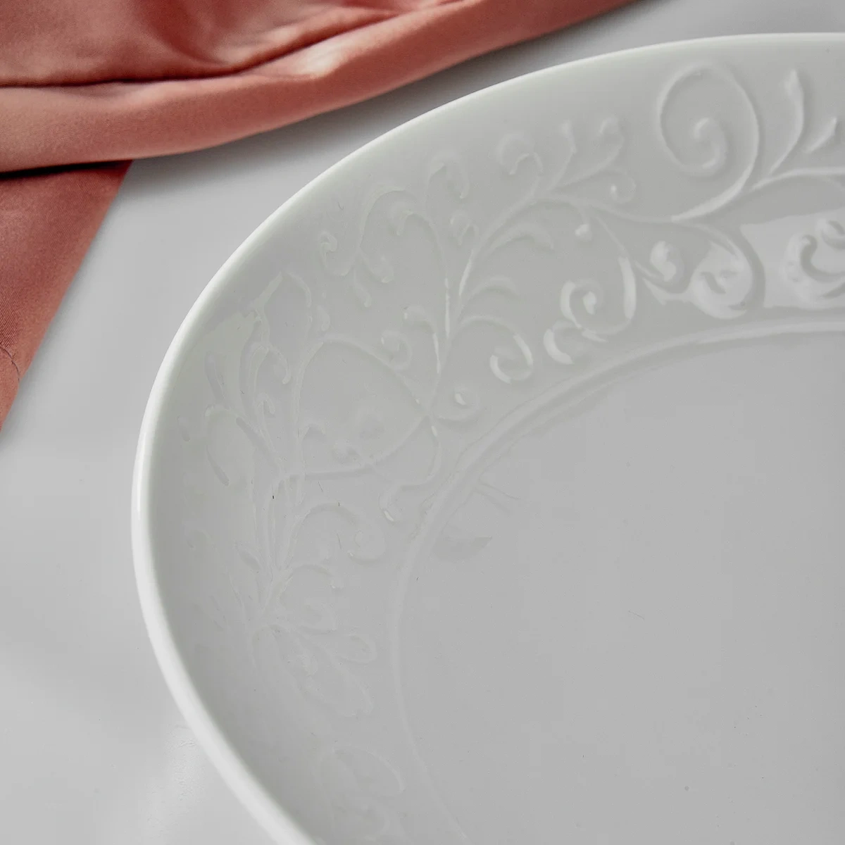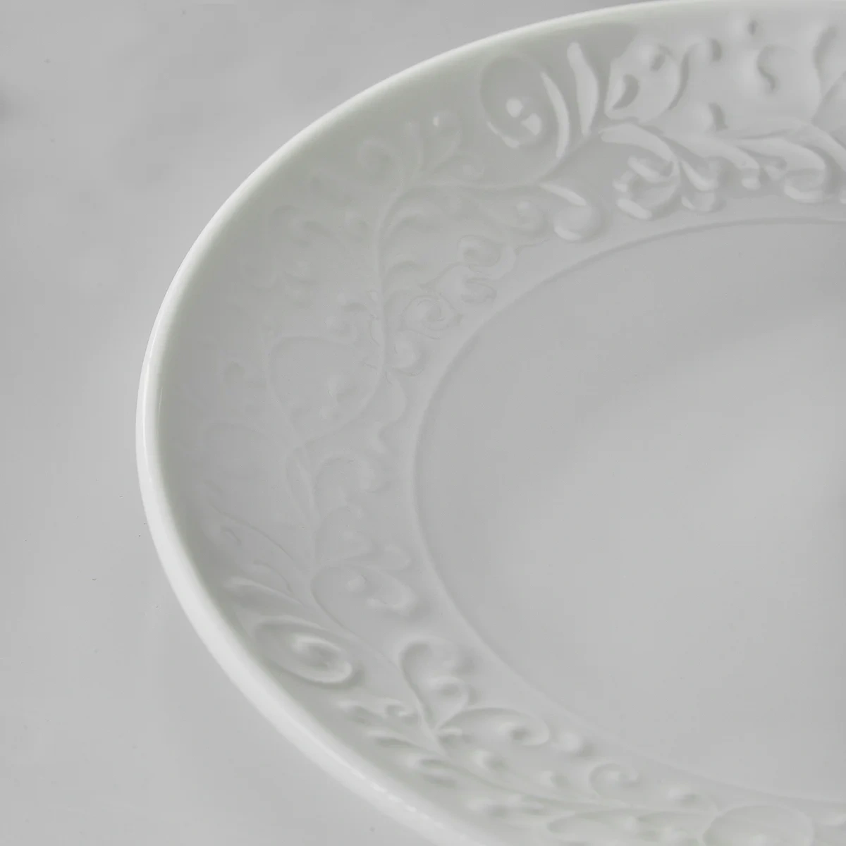 Тарелка изготовлена из высококачественного фарфора, покрытого двойным слоем глазуровки с изящным узо...