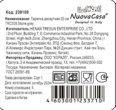 Тарелка десертная Nuovacasa Stone Grey, 20см
