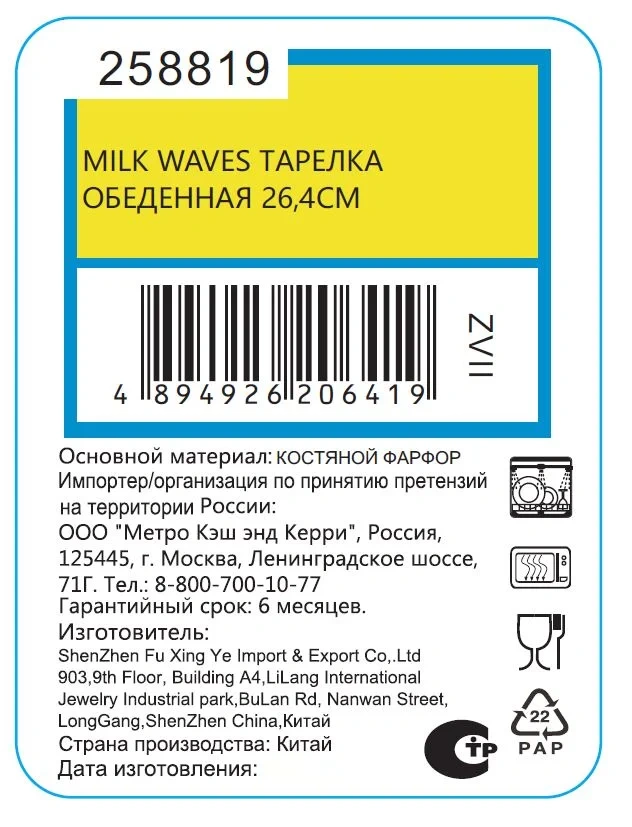 Тарелка обеденная Fioretta Aleksandria, 25см