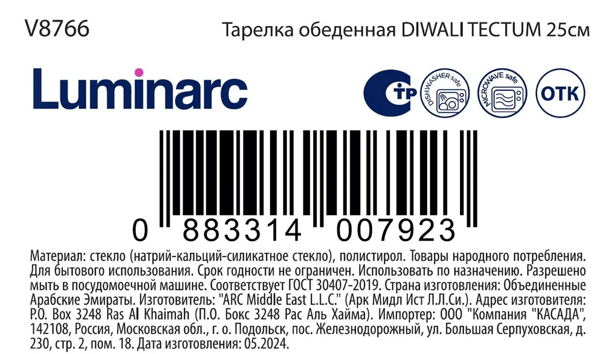 Тарелка обеденная Luminarc Луиз Шартрез, 25см