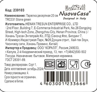 Тарелка десертная Nuovacasa Stone Green, 20см