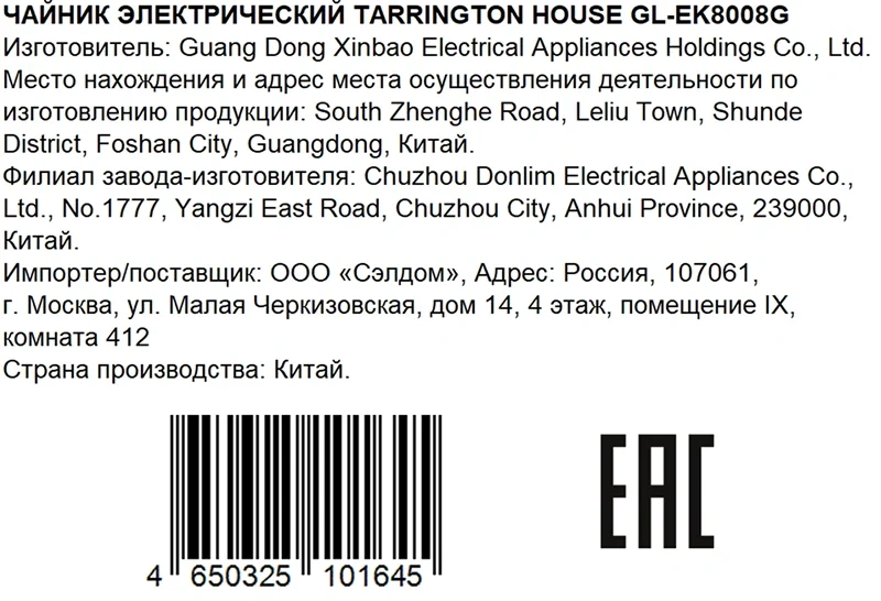 Чайник электрический GL-EK8008G Tarrington House — это высококачественное устройство для кипячения воды, приготовления разных видов чаев, заварного и растворимого кофе, травяных настоев. Он обладает элегантным дизайном и многочисленными функциональными возможностями. Емкость 1,7 л позволяет кипятить достаточное количество воды для большой семьи. Модель получила мощность 2200 Вт, поэтому быстро достигает нужной температуры кипения. Внутри реализована удобная функция автоматического отключения, которая активируется, когда вода закипает. Также в приборе предусмотрена функция поддержания тепла, которая позволяет сохранить уже нагретую воду горячей в течение продолжительного времени. Чайник выполнен из высококачественной нержавеющей стали, что гарантирует его долговечность и надежность. Благодаря эргономичной ручке и плотно закрывающейся крышке он также легкий и удобный в использовании. Его минималистский дизайн удачно вписывается в современные стили интерьеры, например, лофт, фьюжн, техно, хай-тек. Прибор включается в сеть при помощи сетевого выключателя на ручке. Мощный нагревательный элемент обеспечивает быстрое закипание во??ы менее, чем за 5 минут. Модель можно легко очистить от накипи, а сама она характеризуется длительным сроком эксплуатации.
